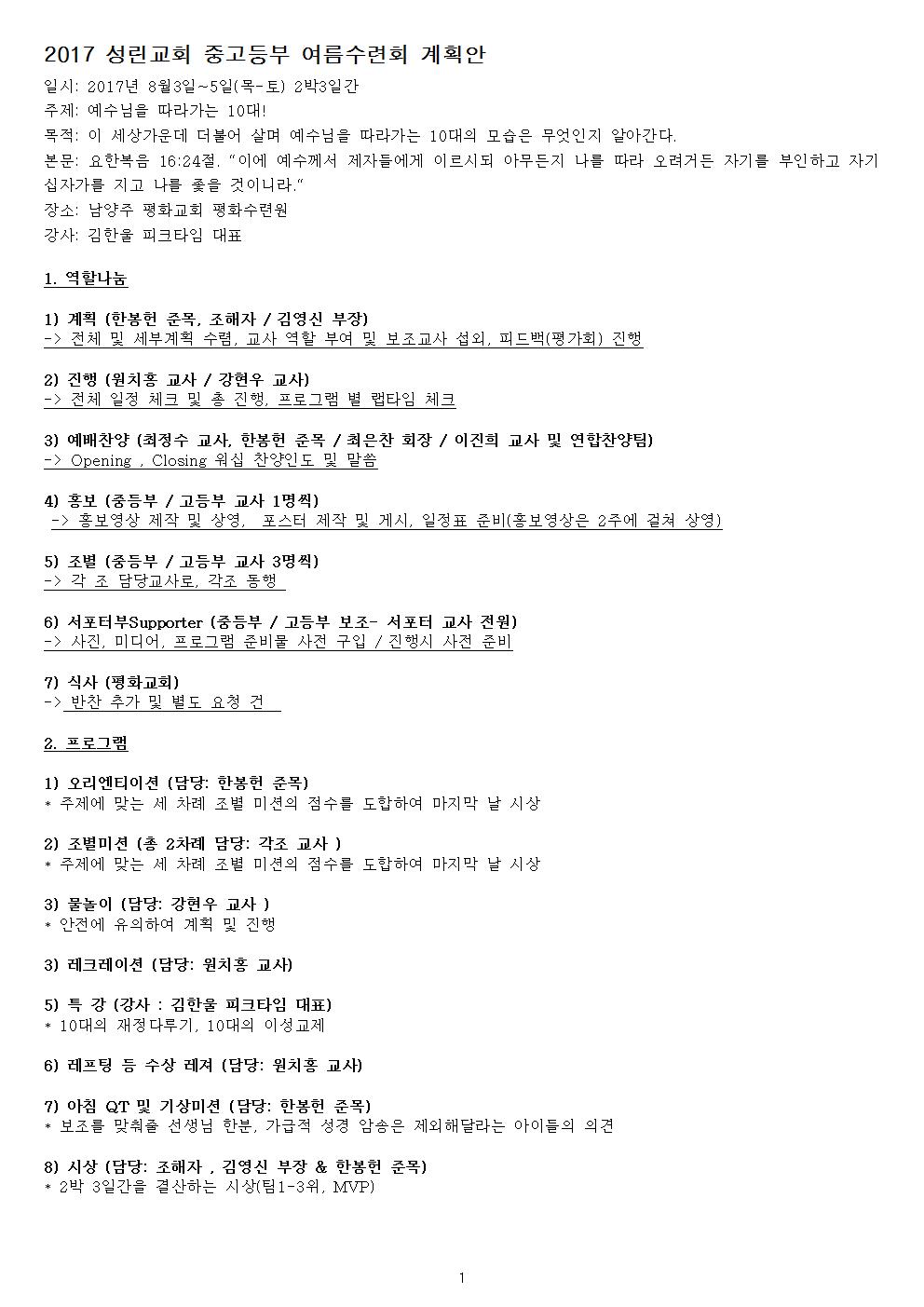2017 ¿©¸§¼ö·Ãȸ °èȹ¾È |