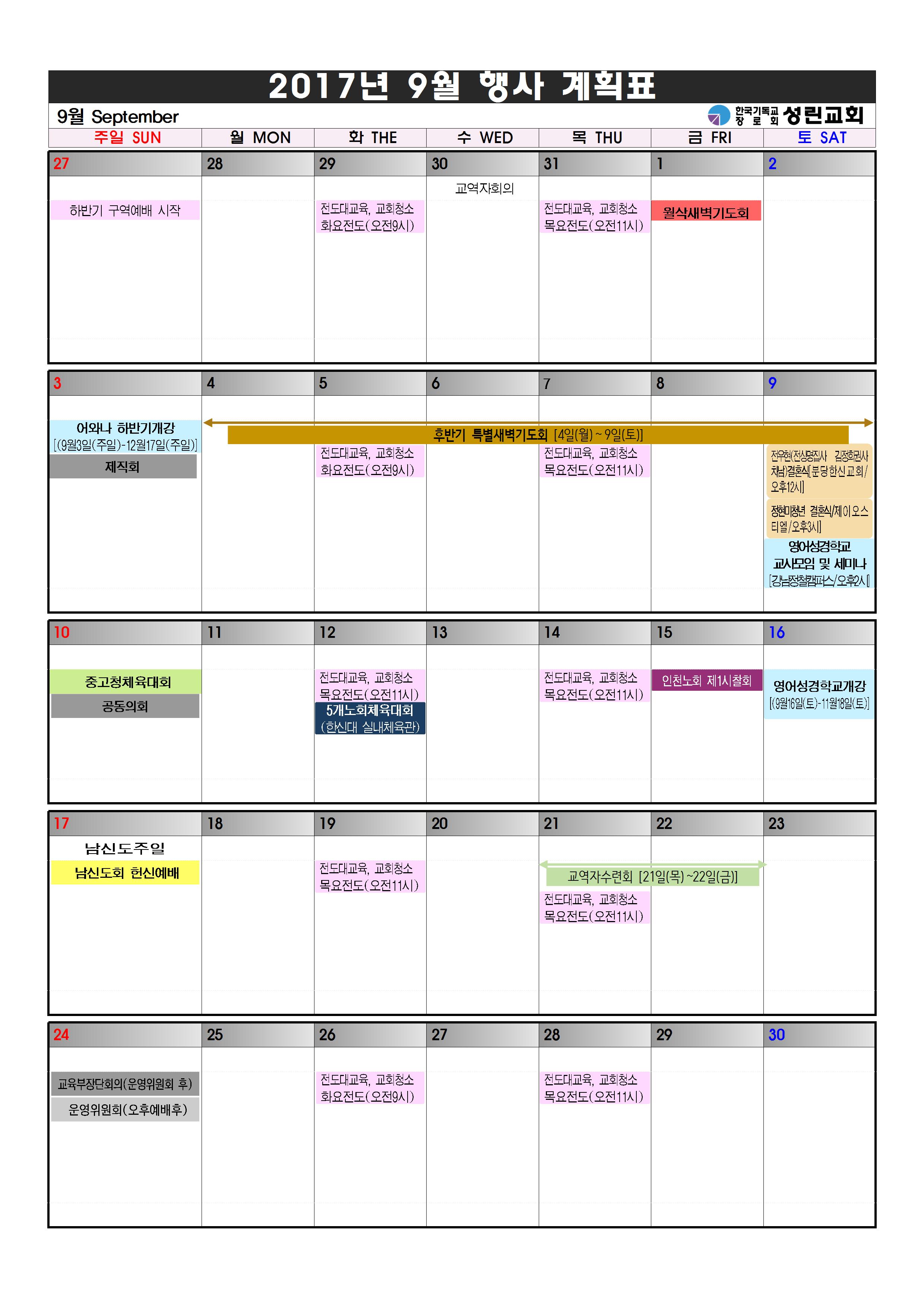 2017³â 9¿ù ±³È¸ Çà»ç ¾È³»