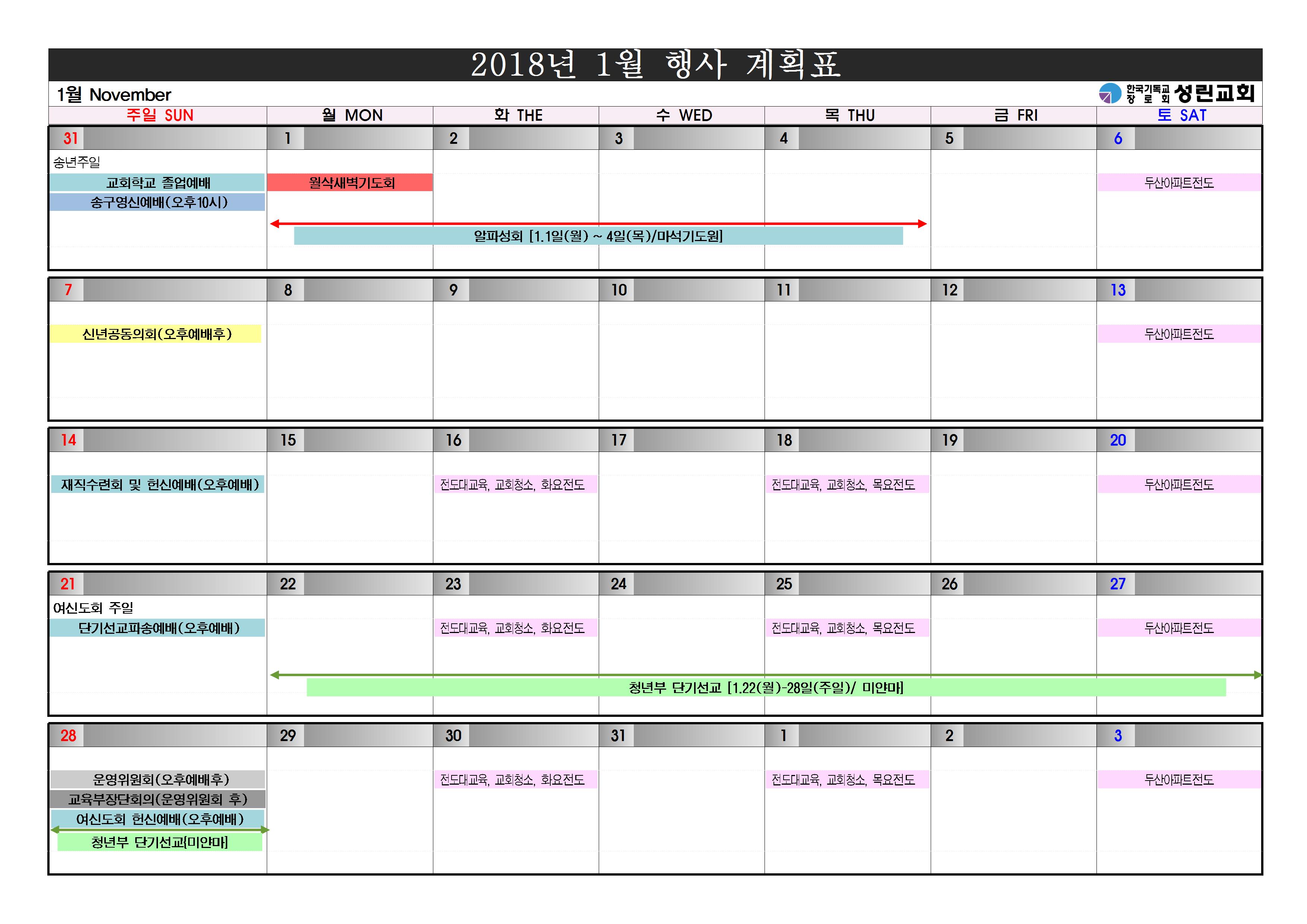 2018³â 1¿ù ±³È¸ Çà»ç ¾È³»