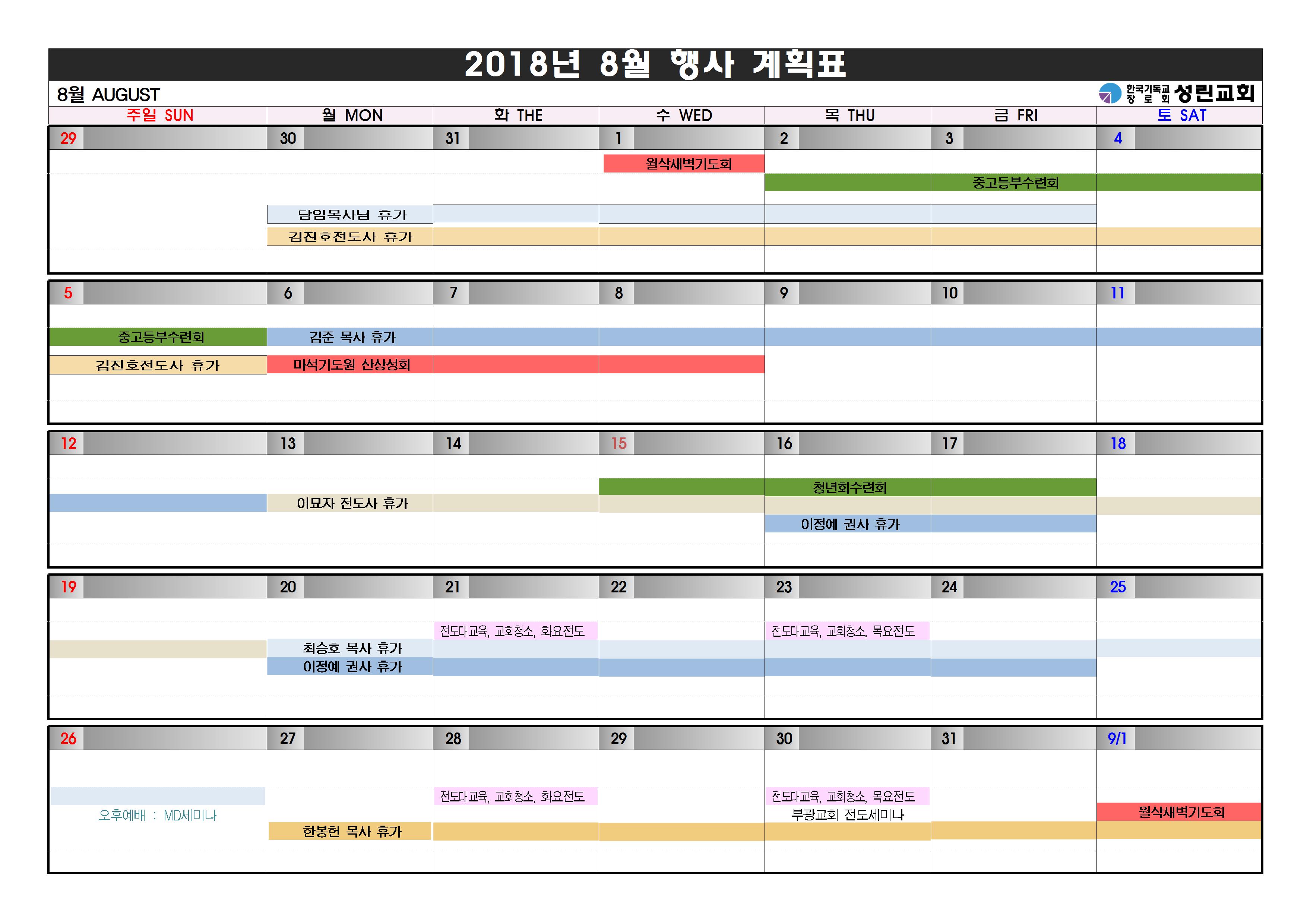 2018³â 8¿ù ±³È¸ Çà»ç ¾È³»