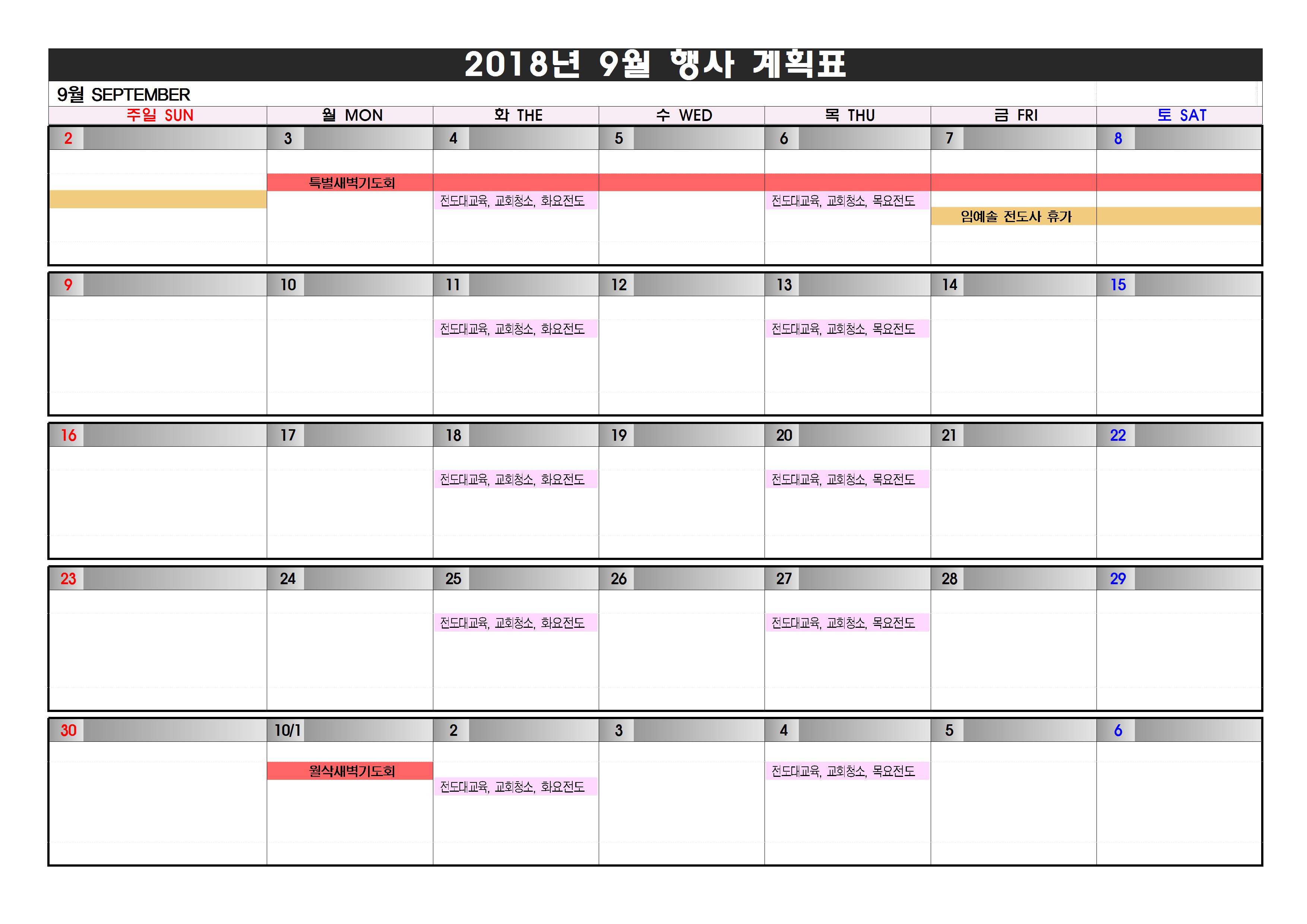 2018³â 9¿ù ±³È¸ Çà»ç ¾È³»