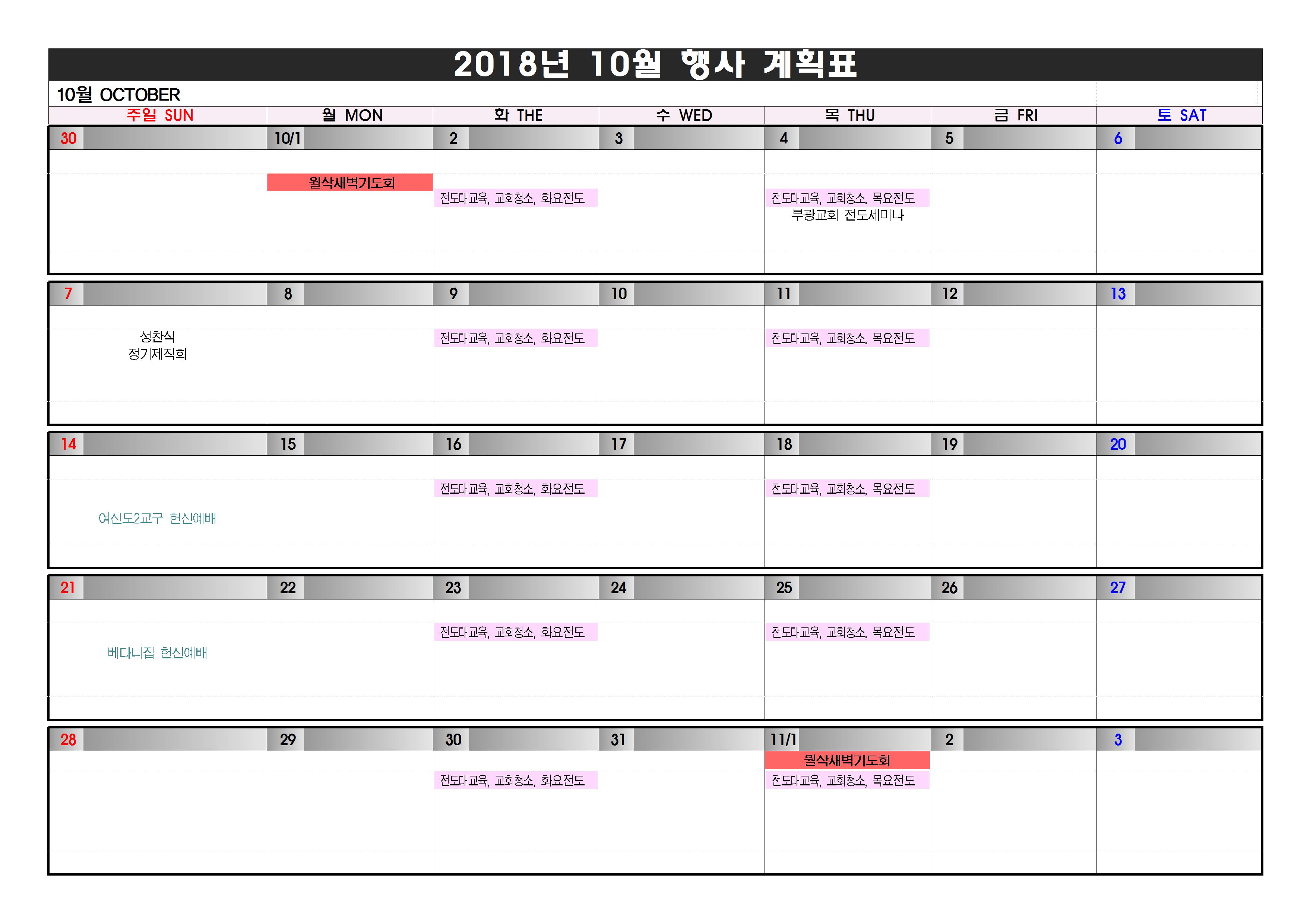 2018³â 10¿ù ±³È¸ Çà»ç ¾È³»