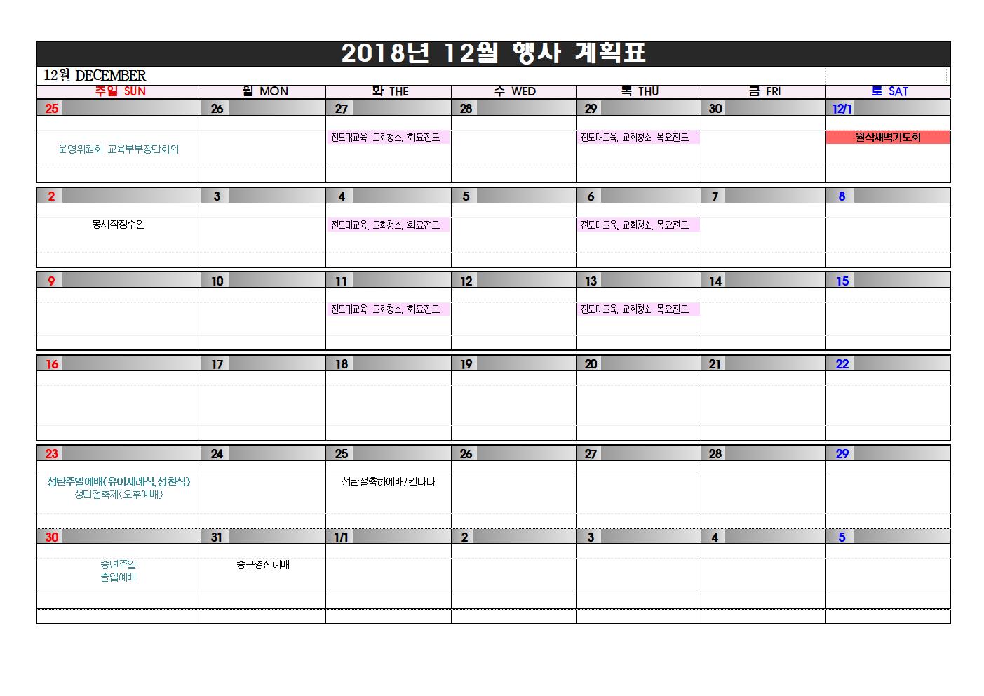 2018³â 12¿ù ±³È¸ Çà»ç ¾È³»
