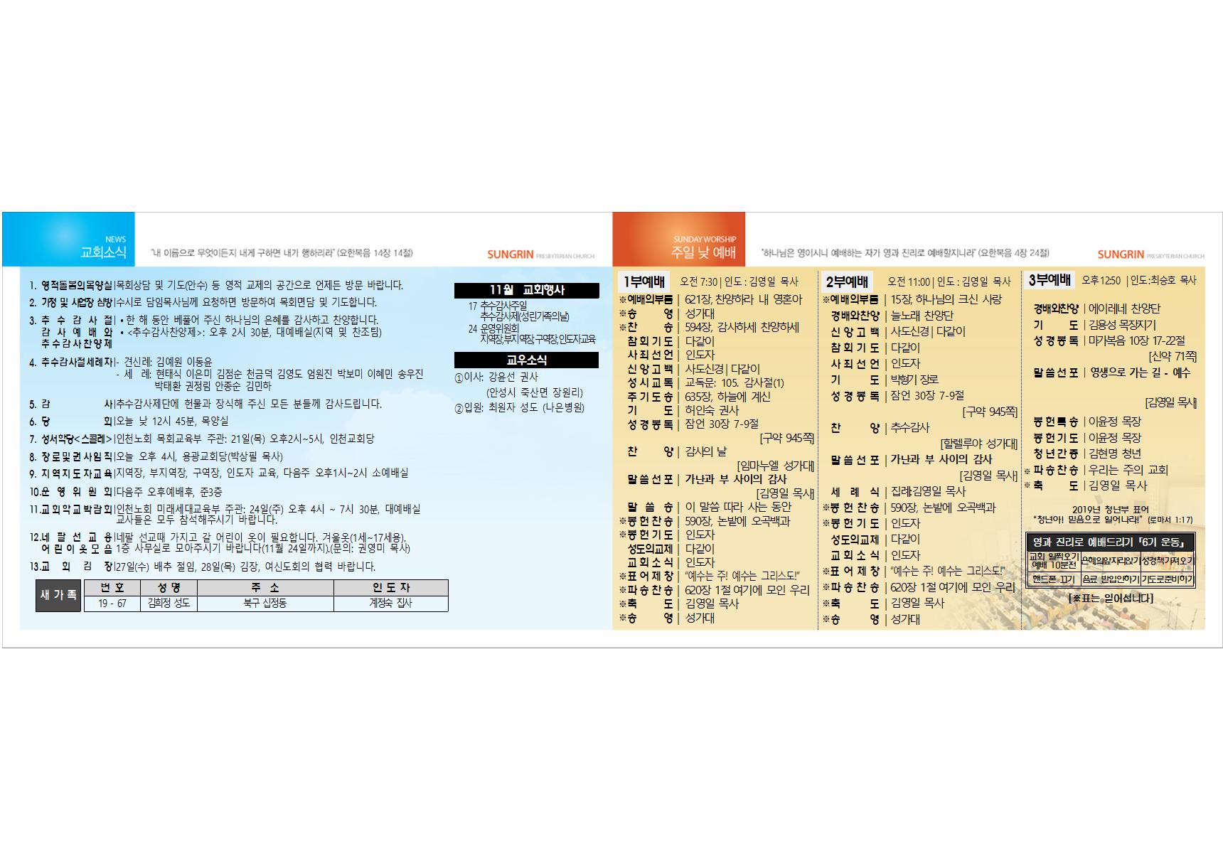 2019³â 11¿ù 17ÀÏ ±³È¸ ÁÖº¸