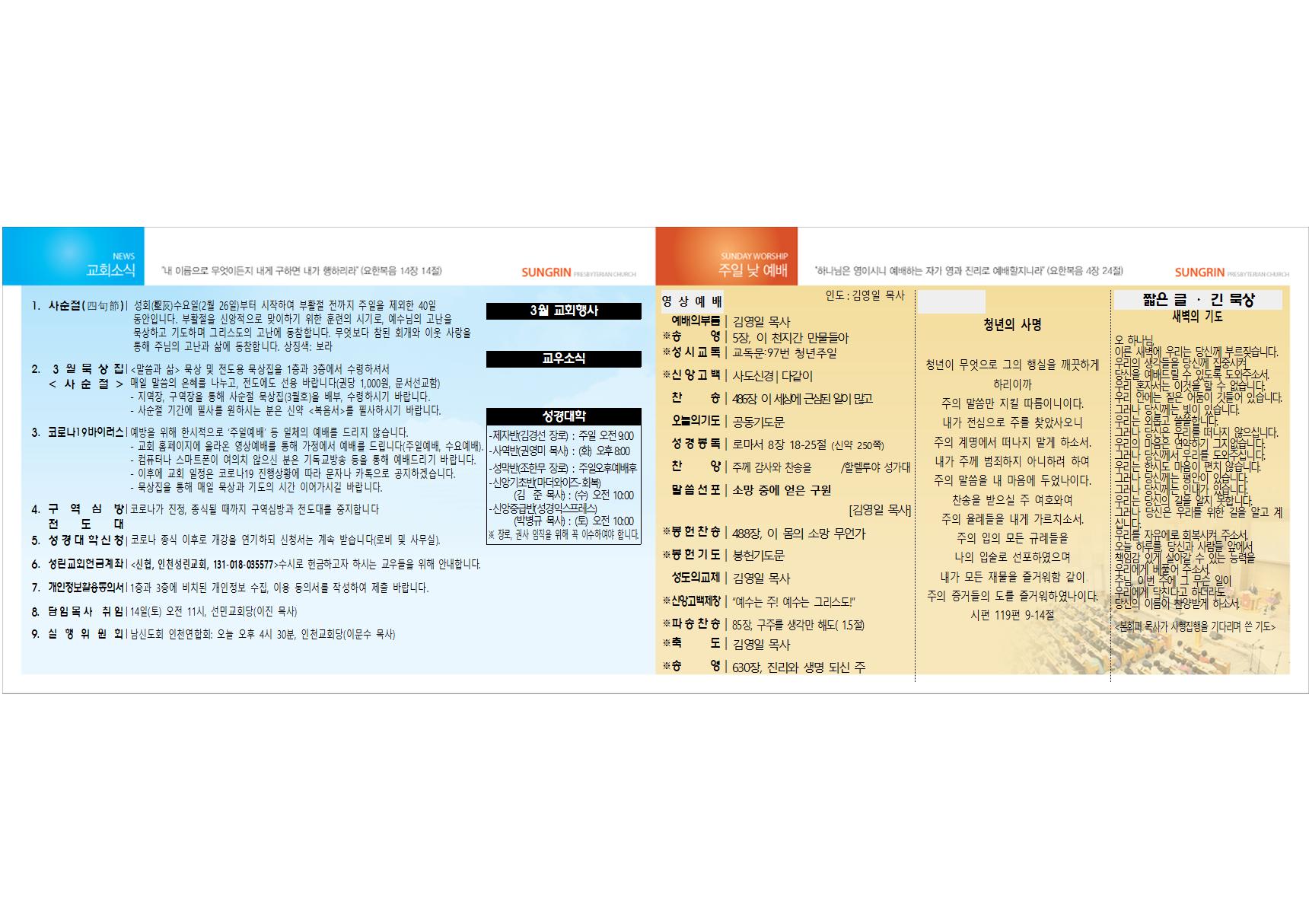 2020³â 3¿ù 8ÀÏ ±³È¸ÁÖº¸
