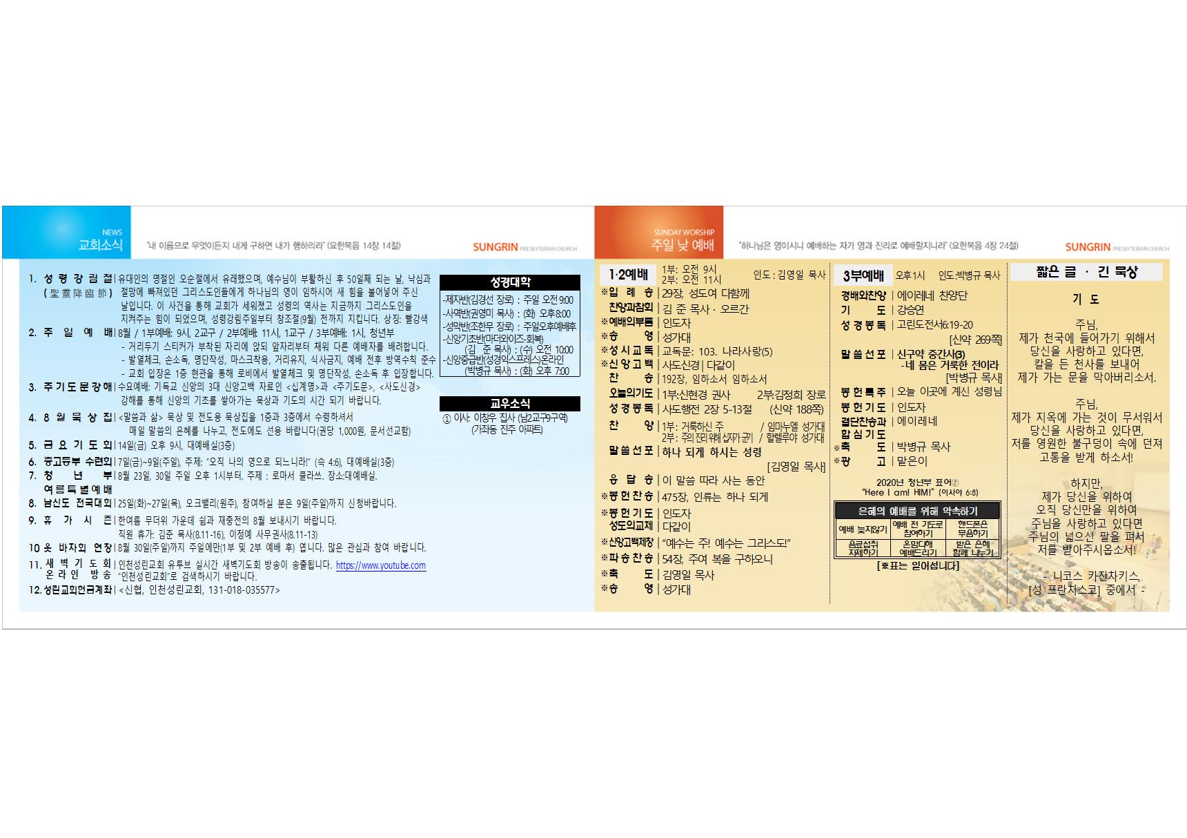 2020³â 8¿ù 2ÀÏ ±³È¸ÁÖº¸