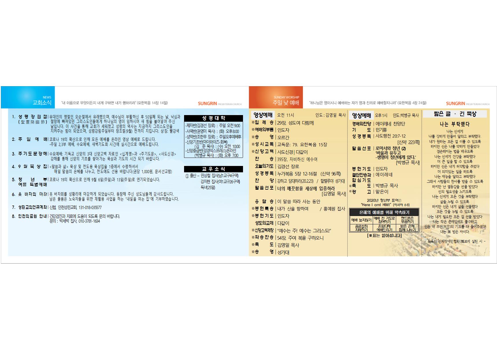 2020³â 8¿ù 2ÀÏ ±³È¸ÁÖº¸
