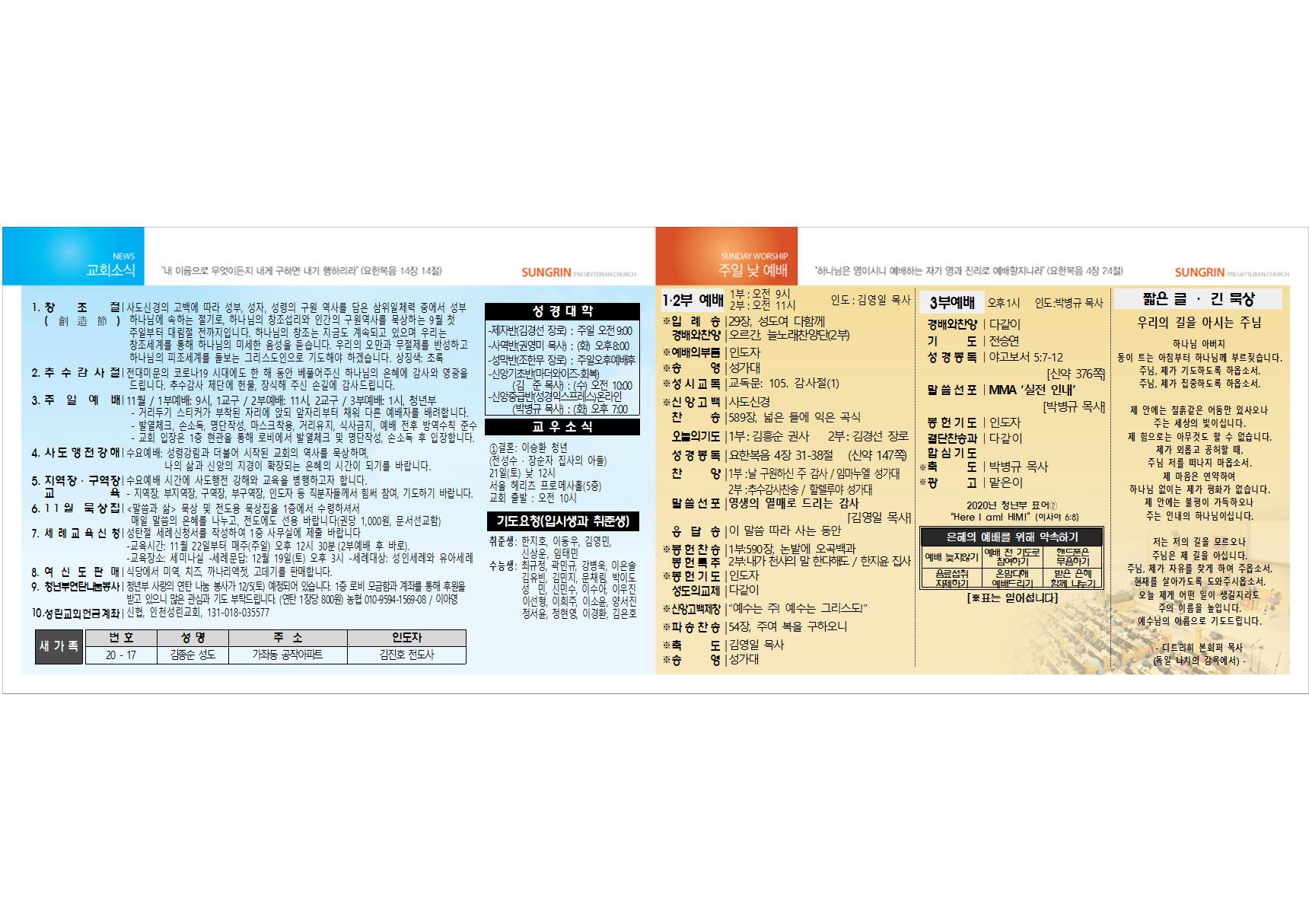 2020³â 10¿ù 11ÀÏ ±³È¸ÁÖº¸