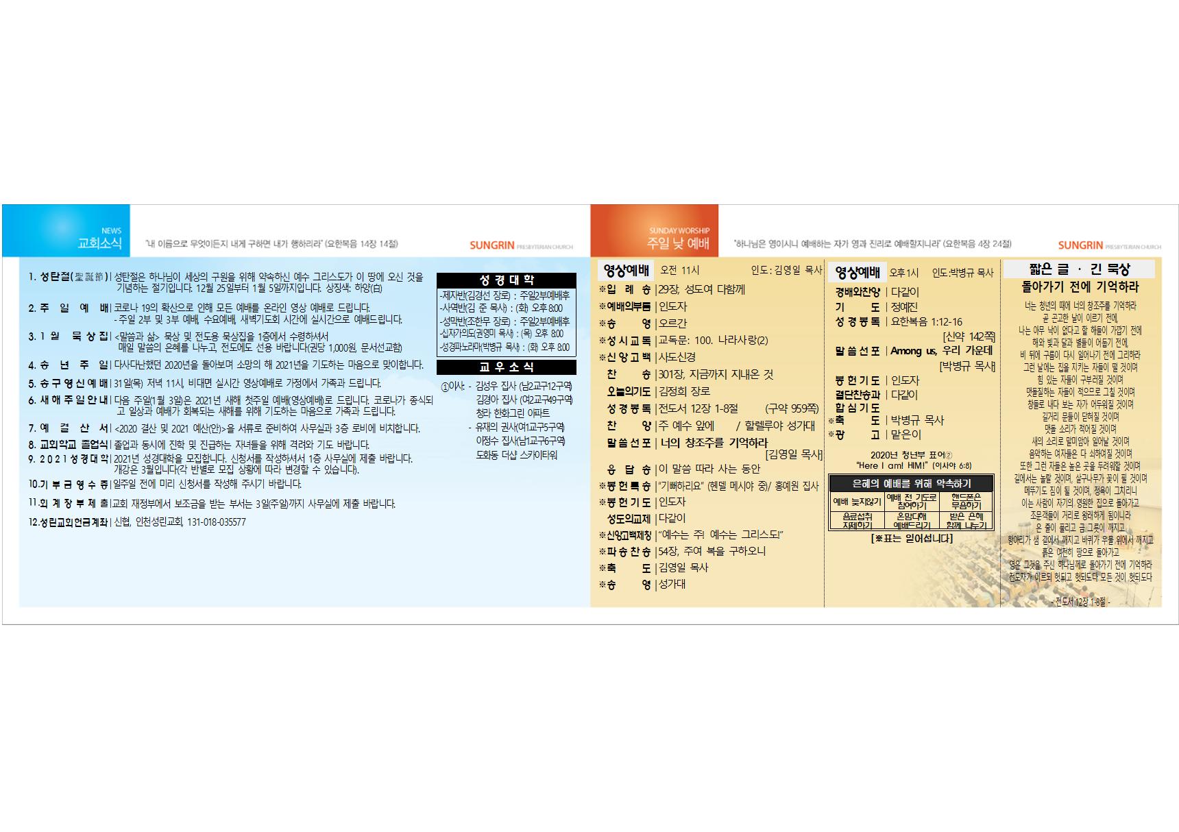 2020³â 12¿ù 20ÀÏ ±³È¸ÁÖº¸
