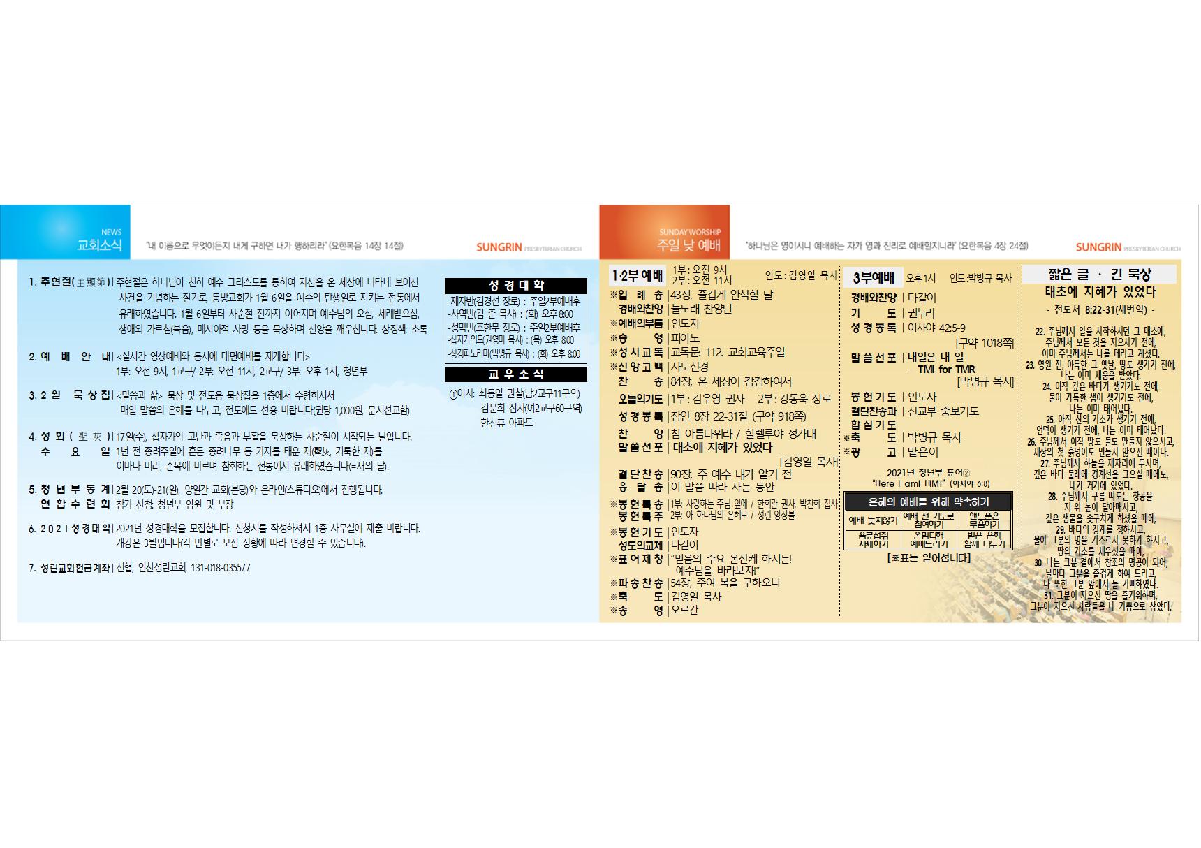 2021³â 2¿ù 21ÀÏ ±³È¸ÁÖº¸