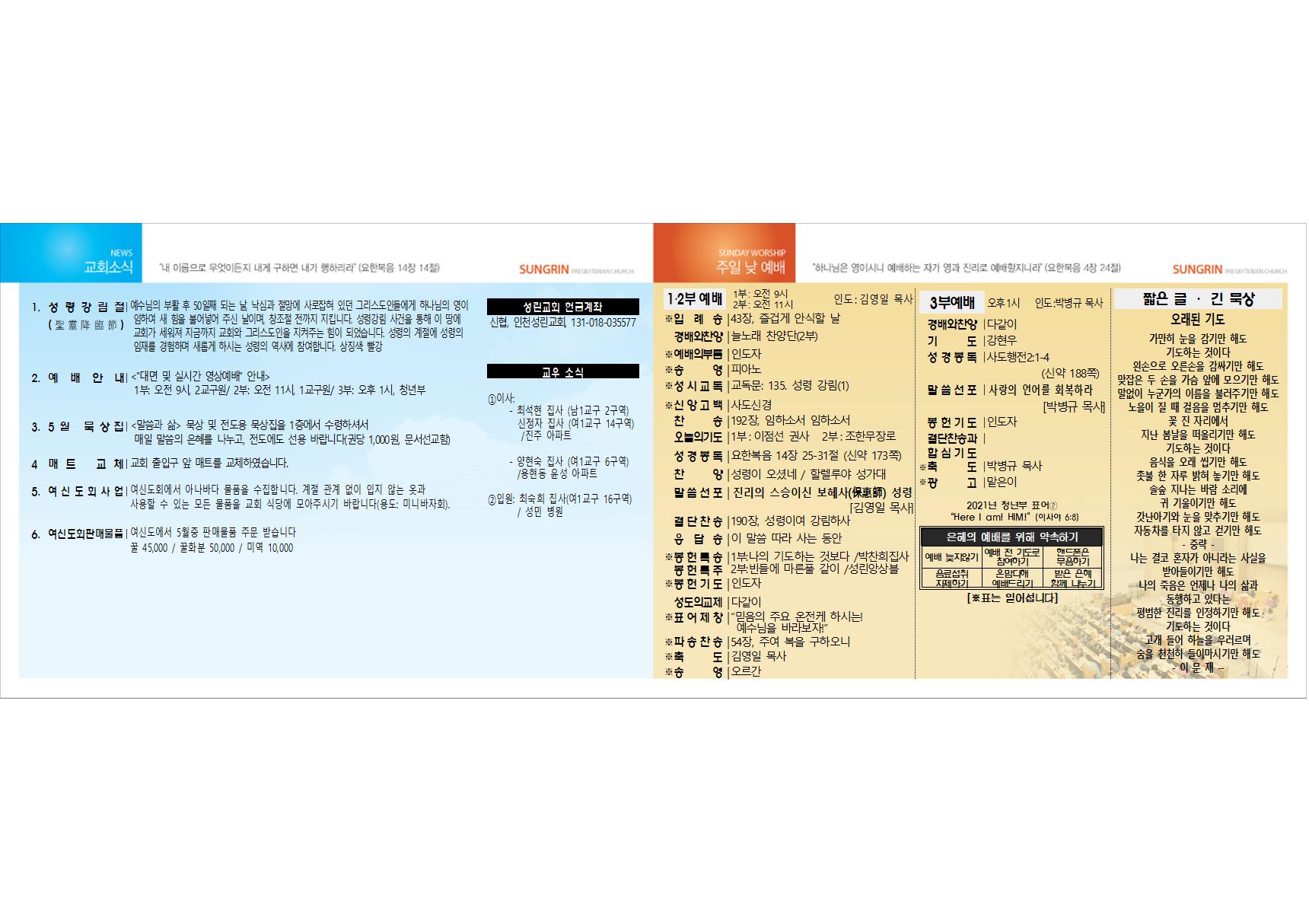 2021³â 5¿ù 2ÀÏ ±³È¸ÁÖº¸