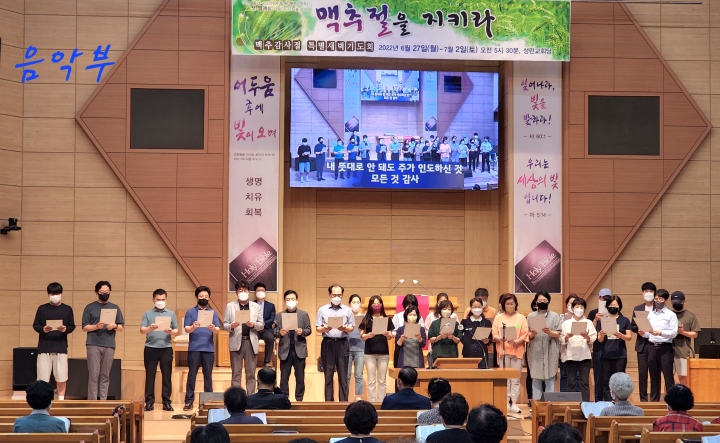 - 6¿ù 27ÀÏ(¿ù) ~ 7¿ù 2ÀÏ(Åä)±îÁö ¸ÆÃß °¨»çÀý Ưº°»õº® ±âµµÈ¸°¡ ÀÖ¾ú½À´Ï´Ù. ¼ø¼´Â ±Ç»çȸ¿Í À½¾ÇºÎ¿¡¼ ÁÖ°üÇØ Áּ̽À´Ï´Ù. ¸ðµÎ°¡ »ó¹Ý±â µ¿¾È º£Ç®¾î ÁֽŠÇϳª´ÔÀÇ ÀºÇý¿¡ °¨»çÇÏ´Â ½Ã°£À̾ú½À´Ï´Ù.